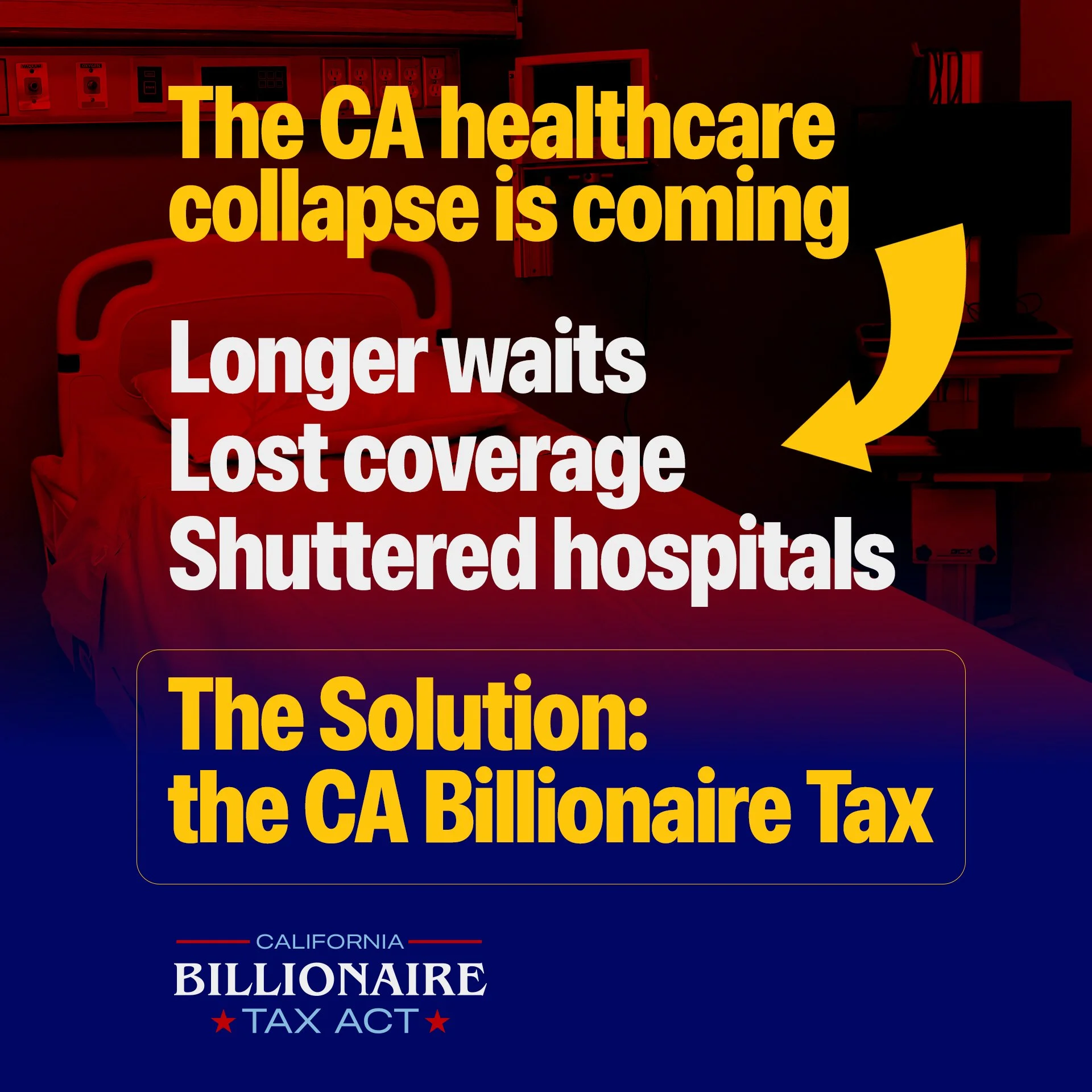 California’s healthcare is at risk — but we can fix it. A one-time, 5% emergency billionaire tax will stop the collapse and protect our care and classrooms. This toolkit helps you share the message and take action now.